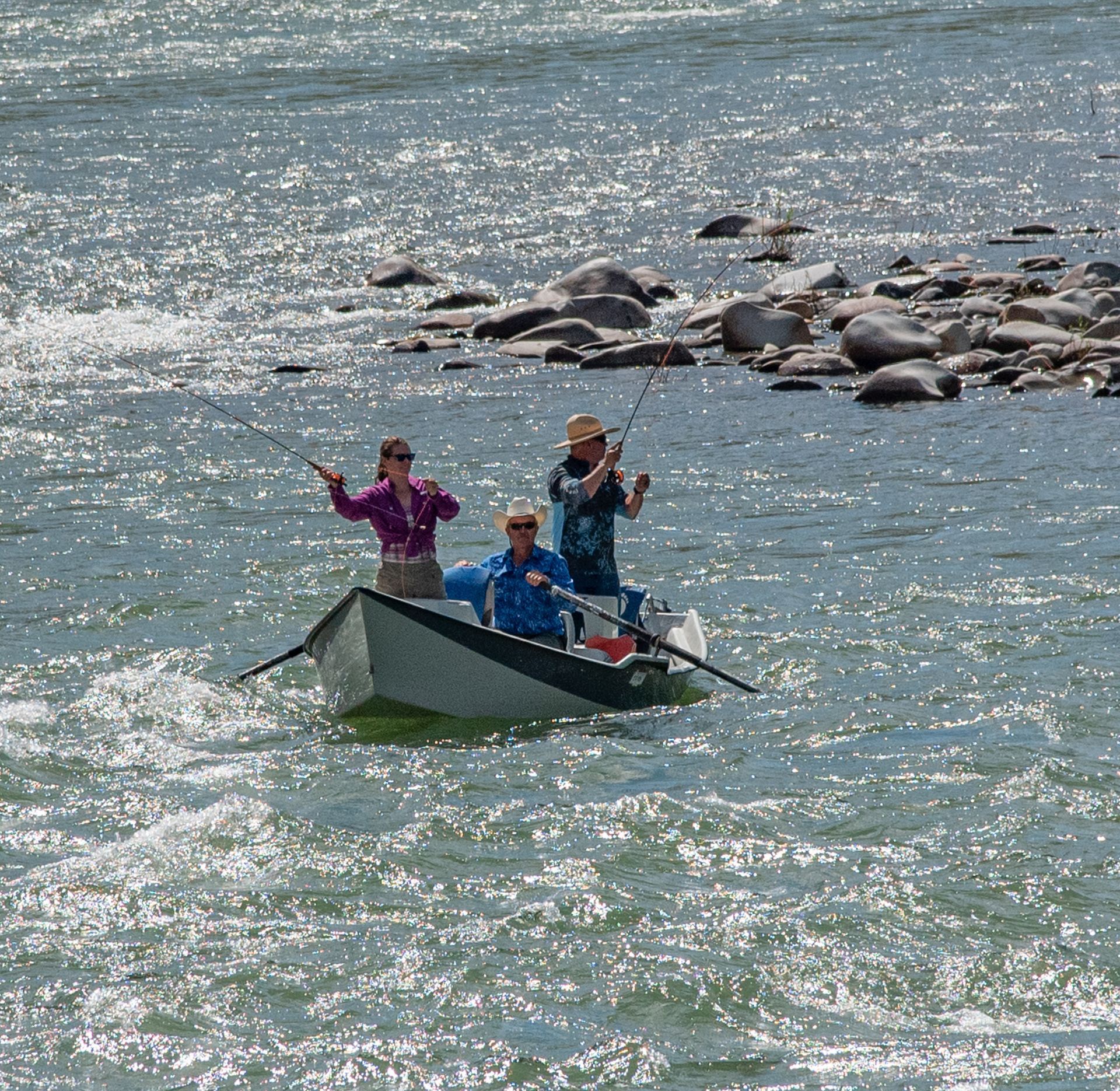 We offer fishing trips on the world-famous Yellowstone River and local lakes. If you only have a day or two, join us to enjoy terrific fishing or just have fun floating down the river and sightseeing. Whether you fly fish or enjoy spin casting, our float trips give you an opportunity to fish for cutthroat, rainbow and brown trout with majestic scenery. We serve a hot lunch river/lakeside including appetizers, salad, main dish and homemade pies and desserts. Maximum of 2 guests per boat.